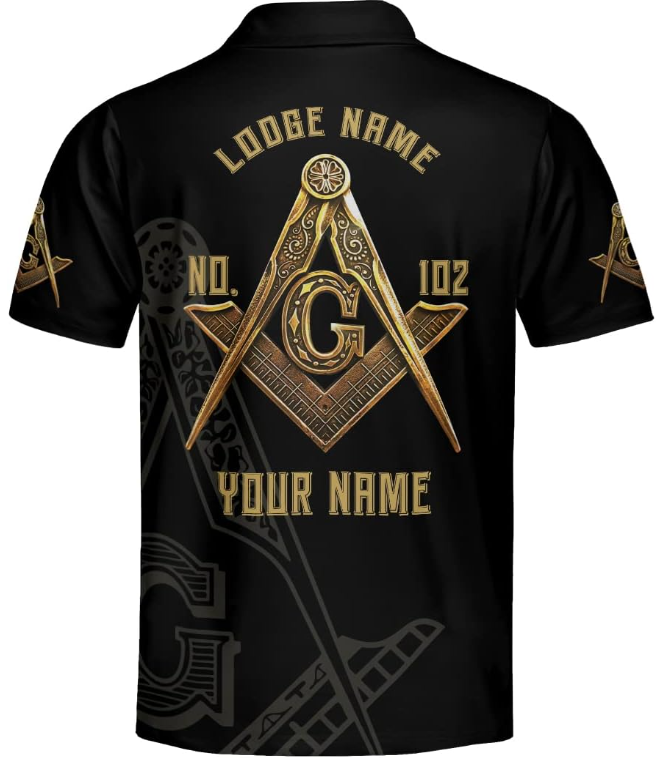 Freemason Black Gold Personalized Custom Name Short Sleeve Polo Shirt, Short Sleeves Polo Shirt, Gift Shirts for Mens and Womens, Short Sleeve Men’s Shirt