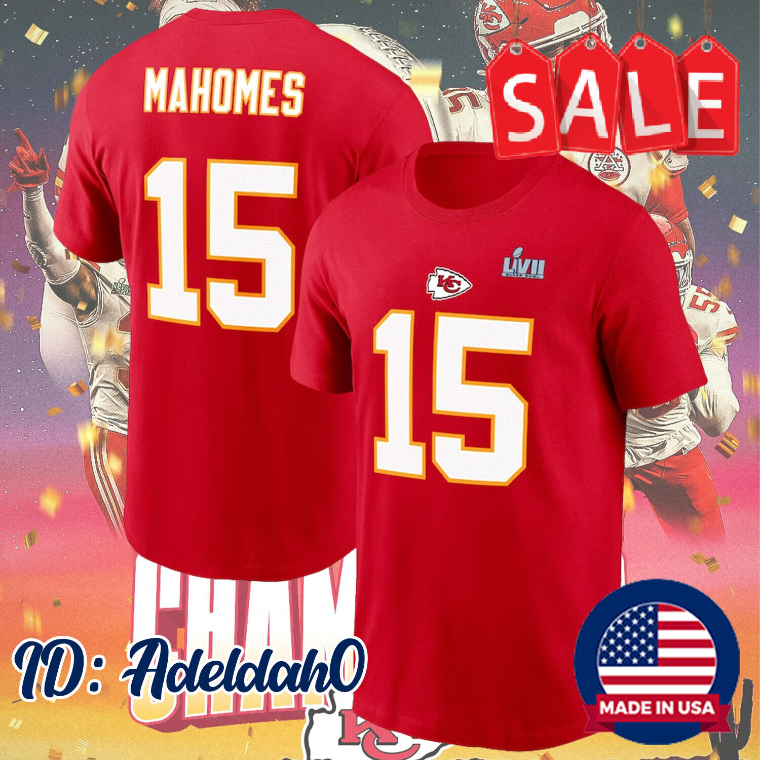 HOT Patrick Mahomes #15 Kansas City Chiefs Super Bowl LVII Name & Number T-Shirt