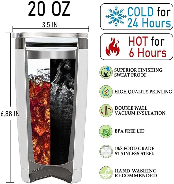 - 💖 TRIPLE INSULATION TECHNOLOGY: Each Heart Gifts doublewall stainless steel tumbler has vacuumsealed, and coppercoated insulation. Stay Hot or Stay Cold, Retain the temperature of your chosen beverage for a prolonged period of time. Any drink that is hot, like coffee, can stay hot for up to 6 hours. Cooler drinks can stay cold for up to 24 hours.