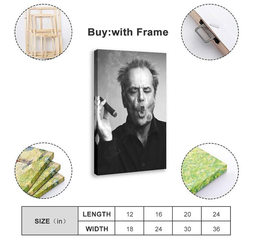 Jack Nicholson Poster Print Vintage Smoking Cigar American Actor Canvas Posters Wall Art Paintings for Living Room Bedroom Office Frame 24x36inch(60x90cm)
