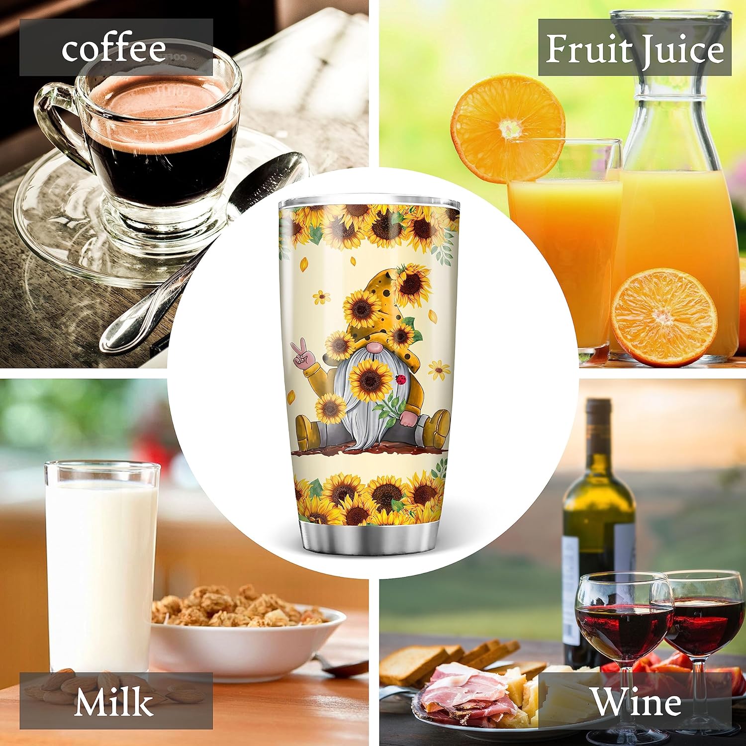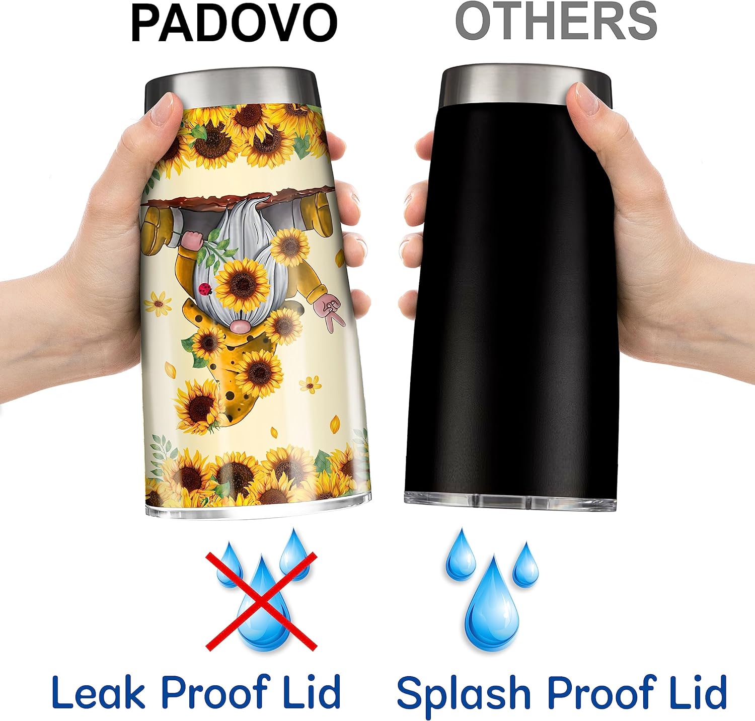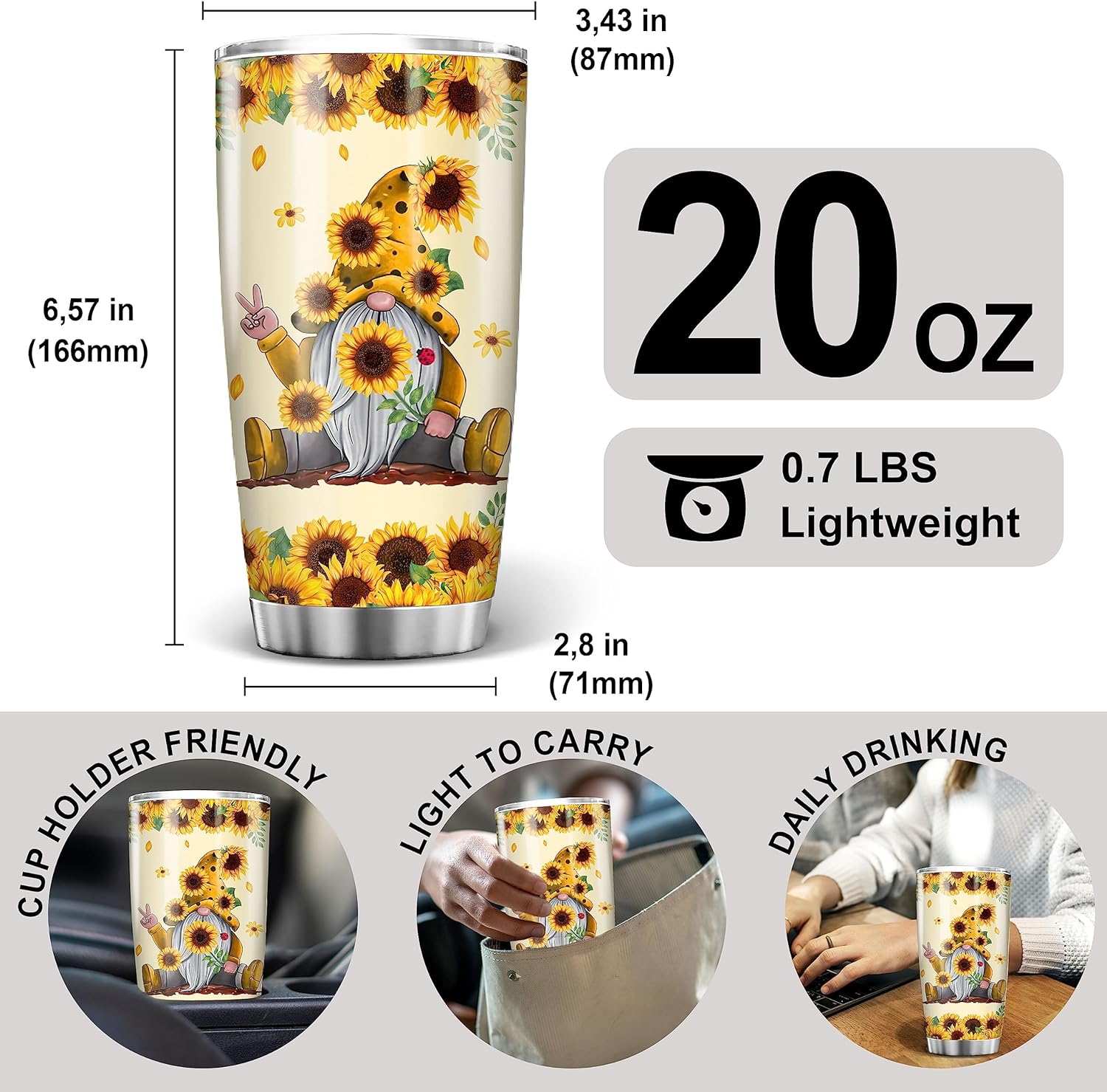 Padovo Gnome Tumbler Cute Gnomes Sunflower Insulated Tumblers 20oz with Lid Double Wall Vacuum Travel Coffee Mug Funny Christmas Birthday Gifts For Gnomies Lovers Women Girls Stainless Steel Cup