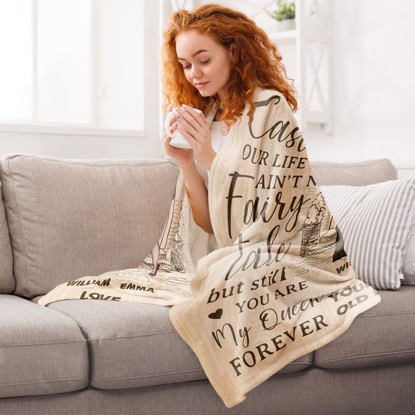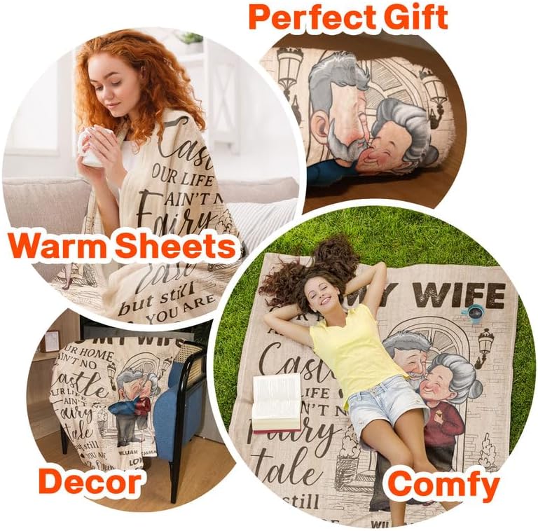 Personalized to My Wife Blanket Custom Avatar Old Couple Our Home Blanket Gift for Couple Lover Wife Woman Her Girlfriend from Husband Man Him Boyfriend On Wedding Anniversary Christmas Valentine