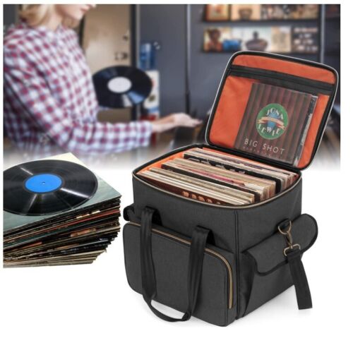 Vinyl Record Carrying Bag Vinyl Albums Storage Case, Dividers Holds up to 60 LP